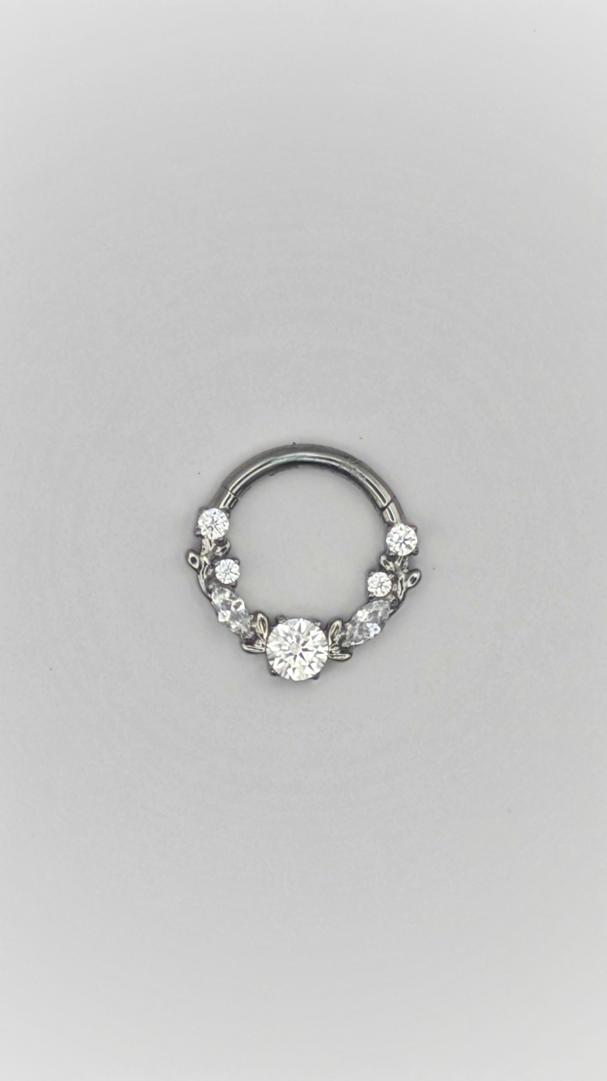 Made from ASTM F136 titanium with a hinged segment design and cubic zirconia for a touch of sparkle. Perfect for new piercings. Size 1.2 x 8 mm, silver, hypoallergenic, and ultra-durable.